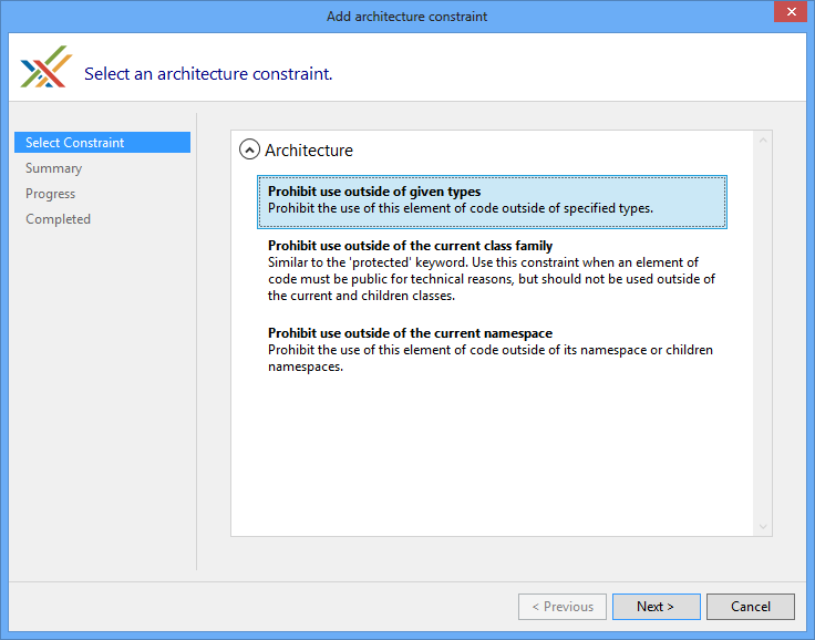 internalclass that should have restricted access. Select "Add architectural constraint..." from the smart tag options.
